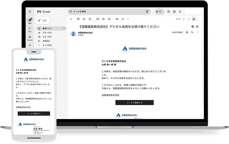名刺交換した相手にデジタル名刺を自動配信することで、