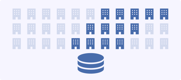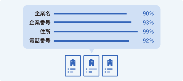 CRMやSFA、オンプレミスのシステムなどで管理されている取引先データを識別し、どの企業や事業所かを特定します。