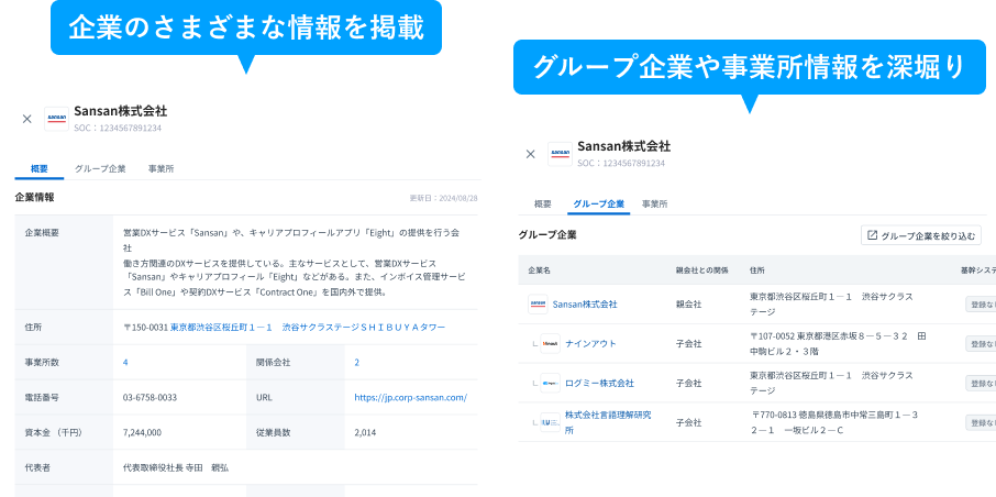 グループ系列企業も瞬時に把握できます。